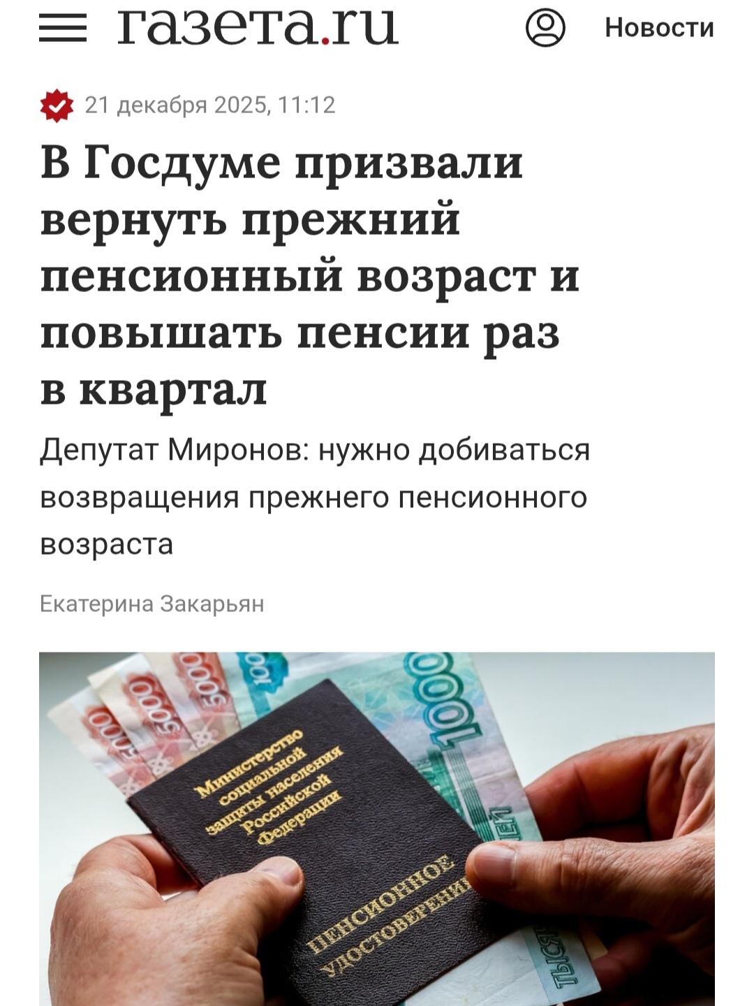 Председатель Партии СПРАВЕДЛИВАЯ РОССИЯ, руководитель партийной фракции в Госдуме Сергей Миронов в беседе с "Газетой.Ru" призвал власти вместо рекомендаций, как выжить на пенсию, сосредоточить усилия на изменении неэффективной пенсионной системы. По его мнению, все советы вызваны только одним обстоятельством – нищенским размером пенсии.