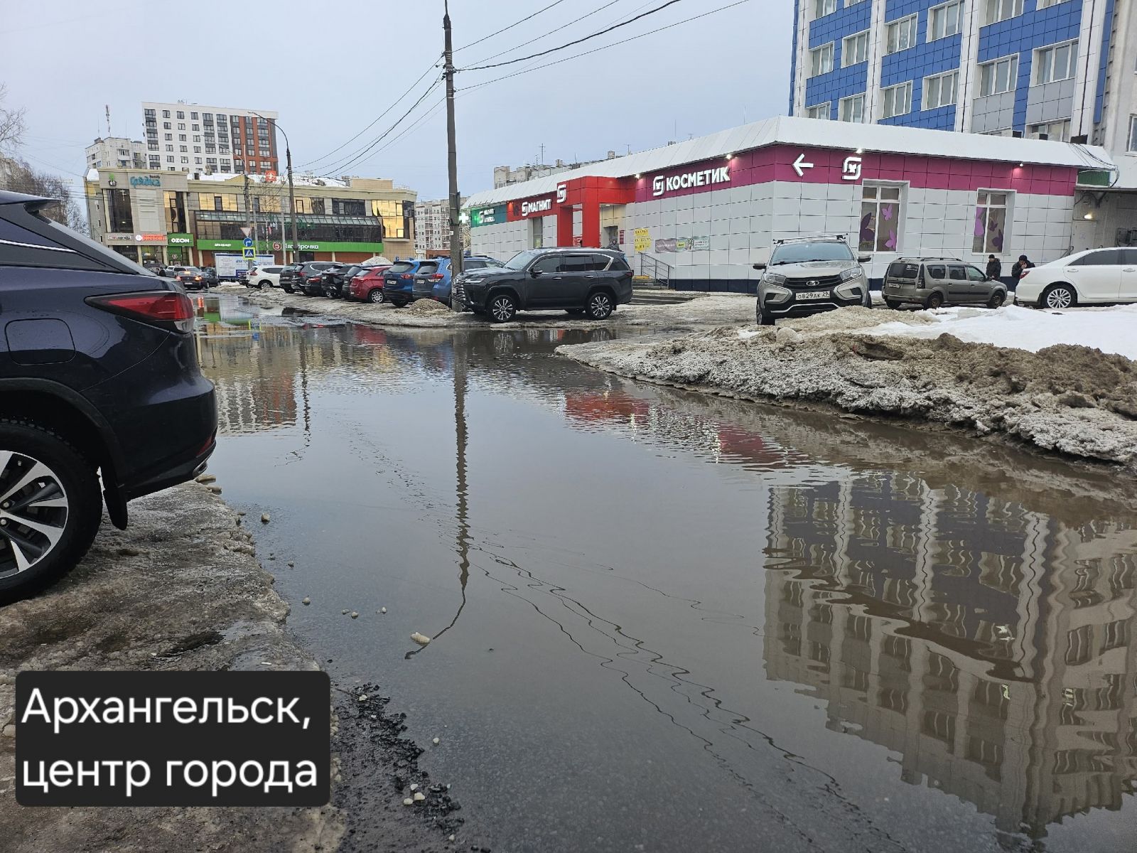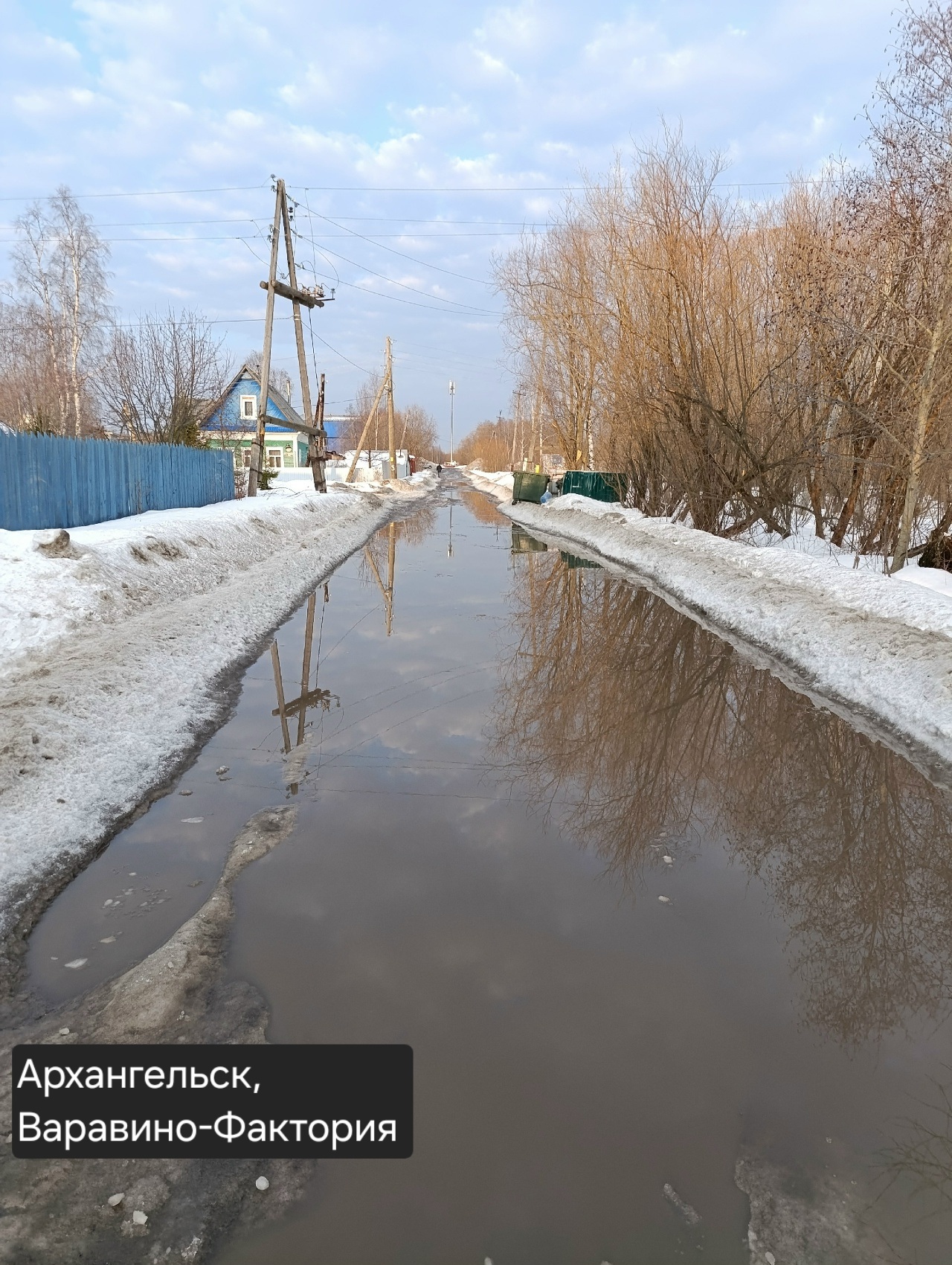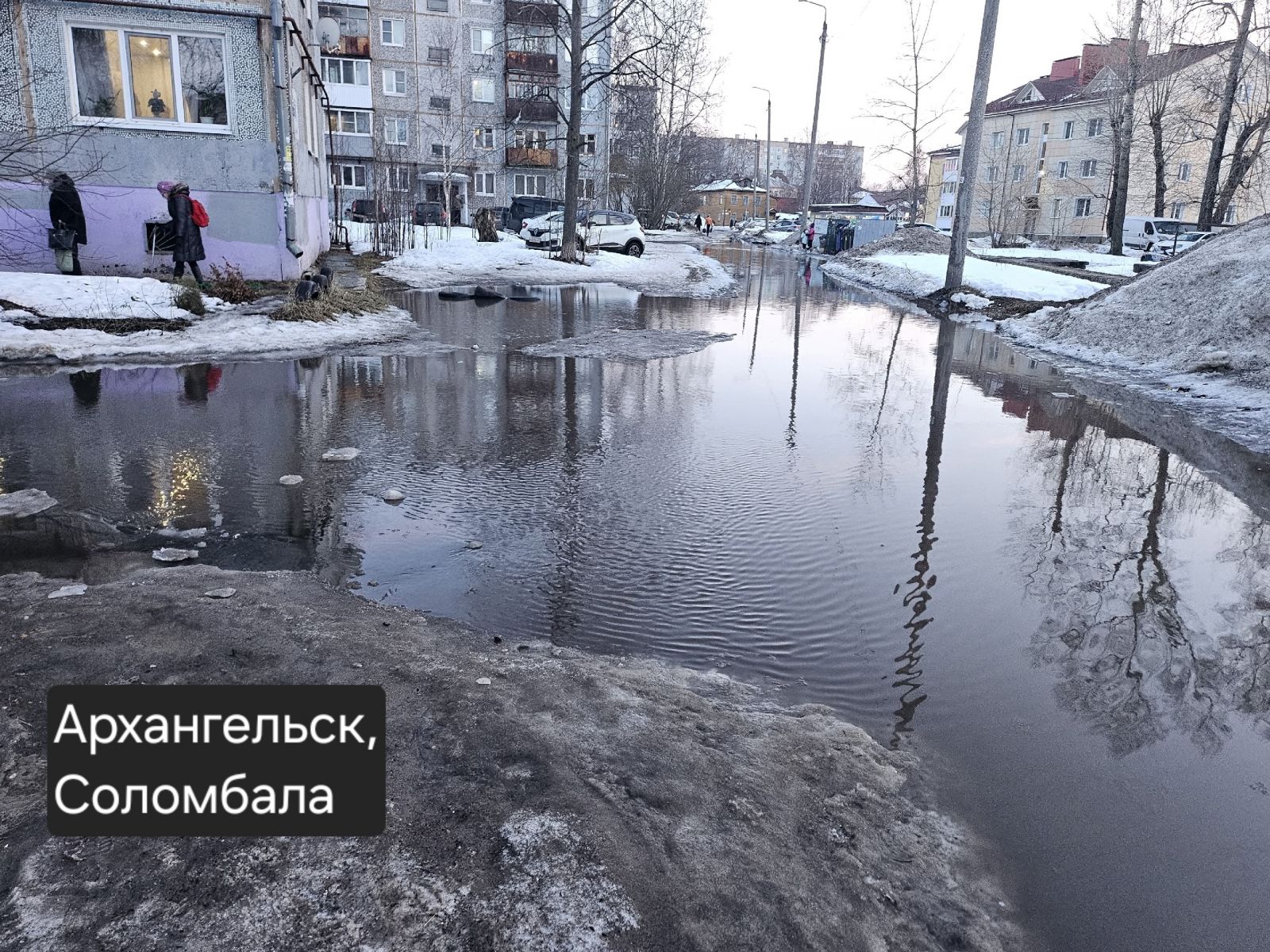Архангельск в это время года традиционно борется за звание северной Венеции, правда, совсем не поэтичное. Люди вынуждены вброд перемещаться по тротуарам и буквально форсировать водные преграды, переходя на другую сторону проезжей части. Дневные оттепели, перемежающиеся ночными заморозками, в таких условиях неизменно провоцируют очереди в травматологических отделениях областного центра и города корабелов.